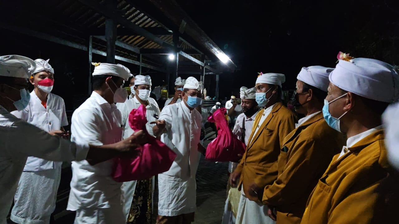 Selain melaksanakan kegiatan penyaluran sembako, sekaligus sembahyang bersama yang pada hari ini jatuh hari Purnama. Sembako tersebut adalah bentuk prihatin pemerintah kepada masyarakat yang terdampak langsung pandemi khususnya para pemangku dan prajuru pura.