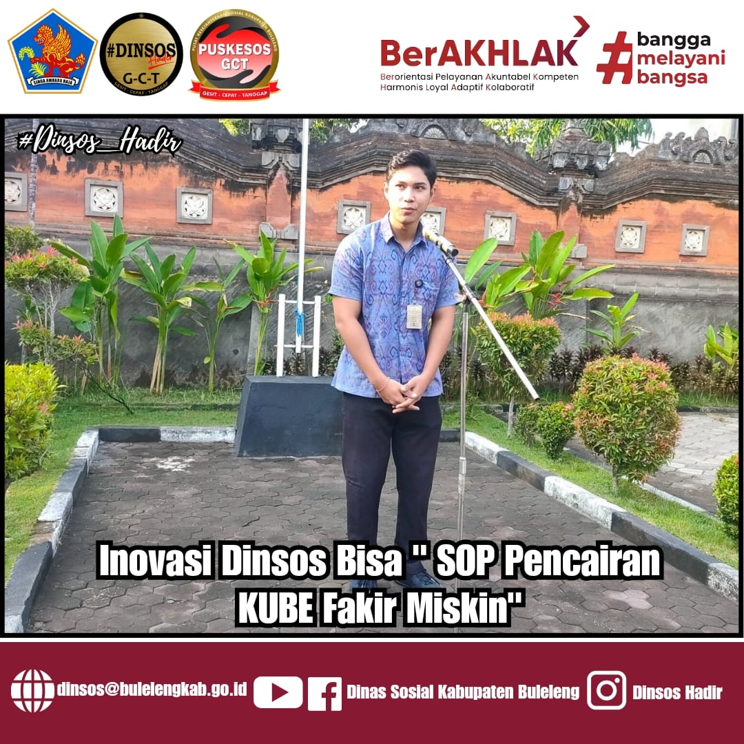 Program inovasi ‘Dinsos Bisa’ merupakan suatu gagasan yang dimiliki pimpinan unit kerja dalam rangka meningkatkan mutu kualitas SDM unggul, berkualitas dan mampu berdaya saing untuk bisa memaparkan seluruh SOP yang ada pada setiap kinerja di bidang lingkungan Dinas Sosial Kab.Buleleng di depan umum.