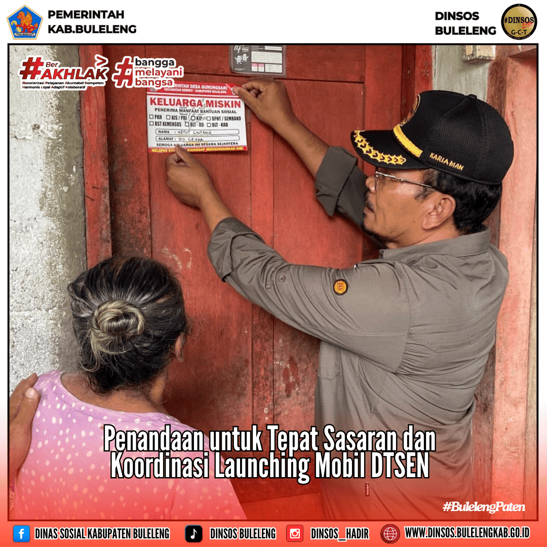 Dalam upaya memastikan bantuan sosial tersalurkan secara tepat sasaran, Dinas Sosial P3A Kabupaten Buleleng I Putu Kariaman Putra S. Sos, MM melaksanakan kegiatan penandaan rumah warga penerima bantuan sosial di dua lokasi, yakni di Kelurahan Kendran dan Desa Gunungsari.