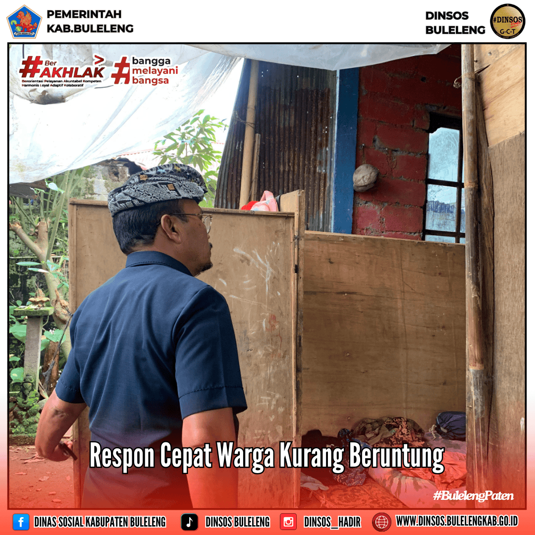 Menindaklanjuti arahan Bapak Wakil Bupati Buleleng, Kepala Dinas Sosial P3A Kabupaten Buleleng, I Putu Kariaman Putra,S.Sos.,M.M didampingi SDM PKH setempat melaksanakan kunjungan lapangan ke rumah warga kurang beruntung atas nama I Nyoman Sukraja dan Ni Luh Sukrani yang beralamat di Desa Sudaji, Kecamatan Sawan.