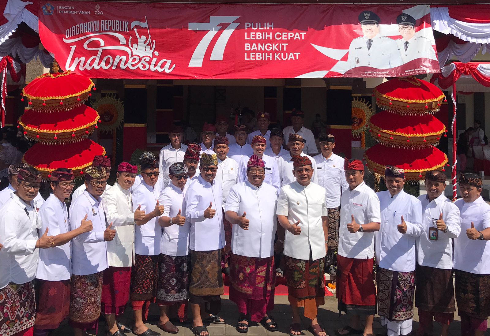 Pemerintah Kabupaten Buleleng menggelar upacara bendera Merah Putih dalam rangka HUT RI ke-77 di lapangan umum taman kota Singaraja.