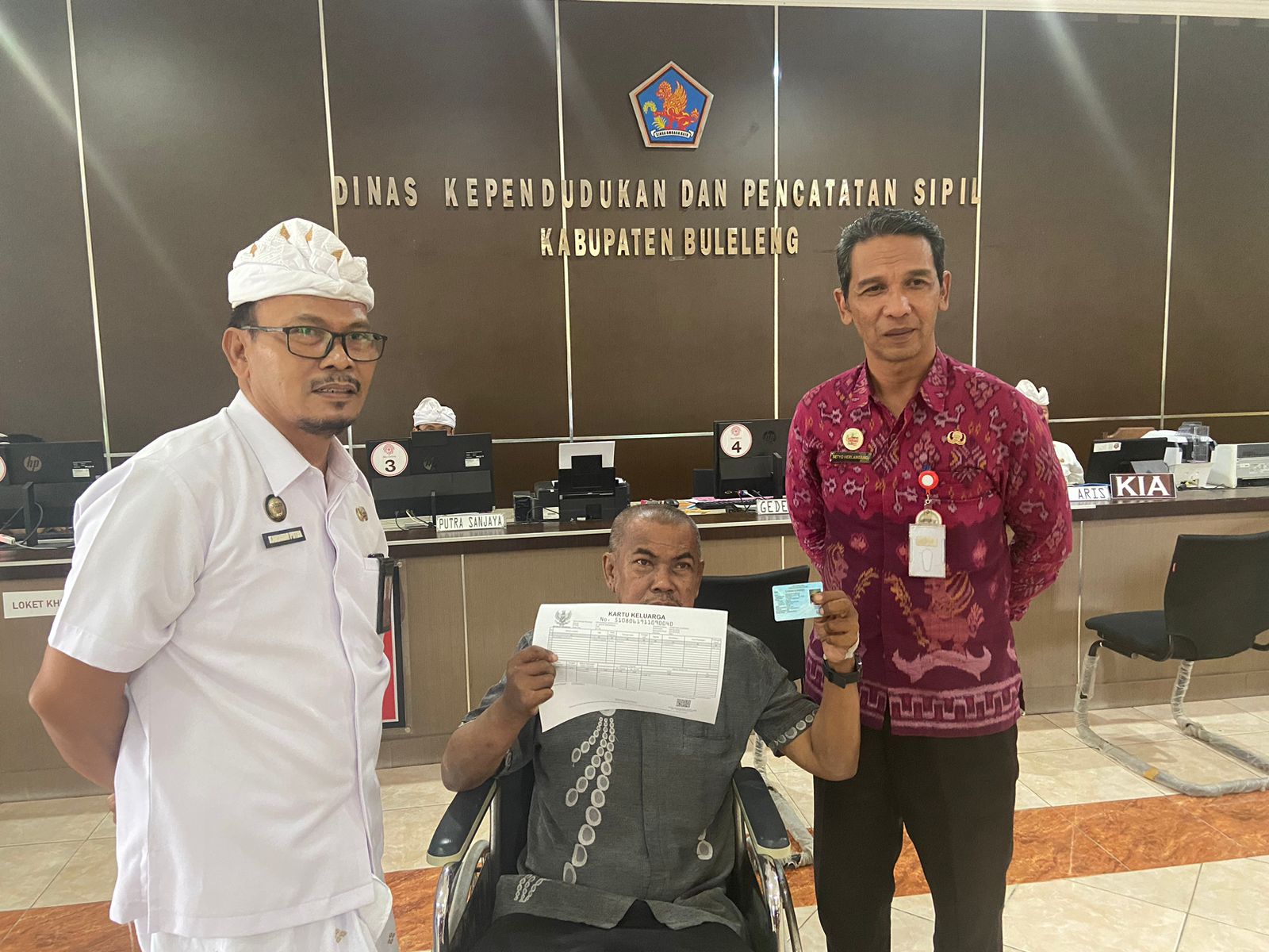 Dinas Sosial berkolaborasi bersama Disdukcapil Buleleng dalam hal memfasilitasi warga lansia sebatang kara untuk mencetak administrasi Kependududkan KTP & KK