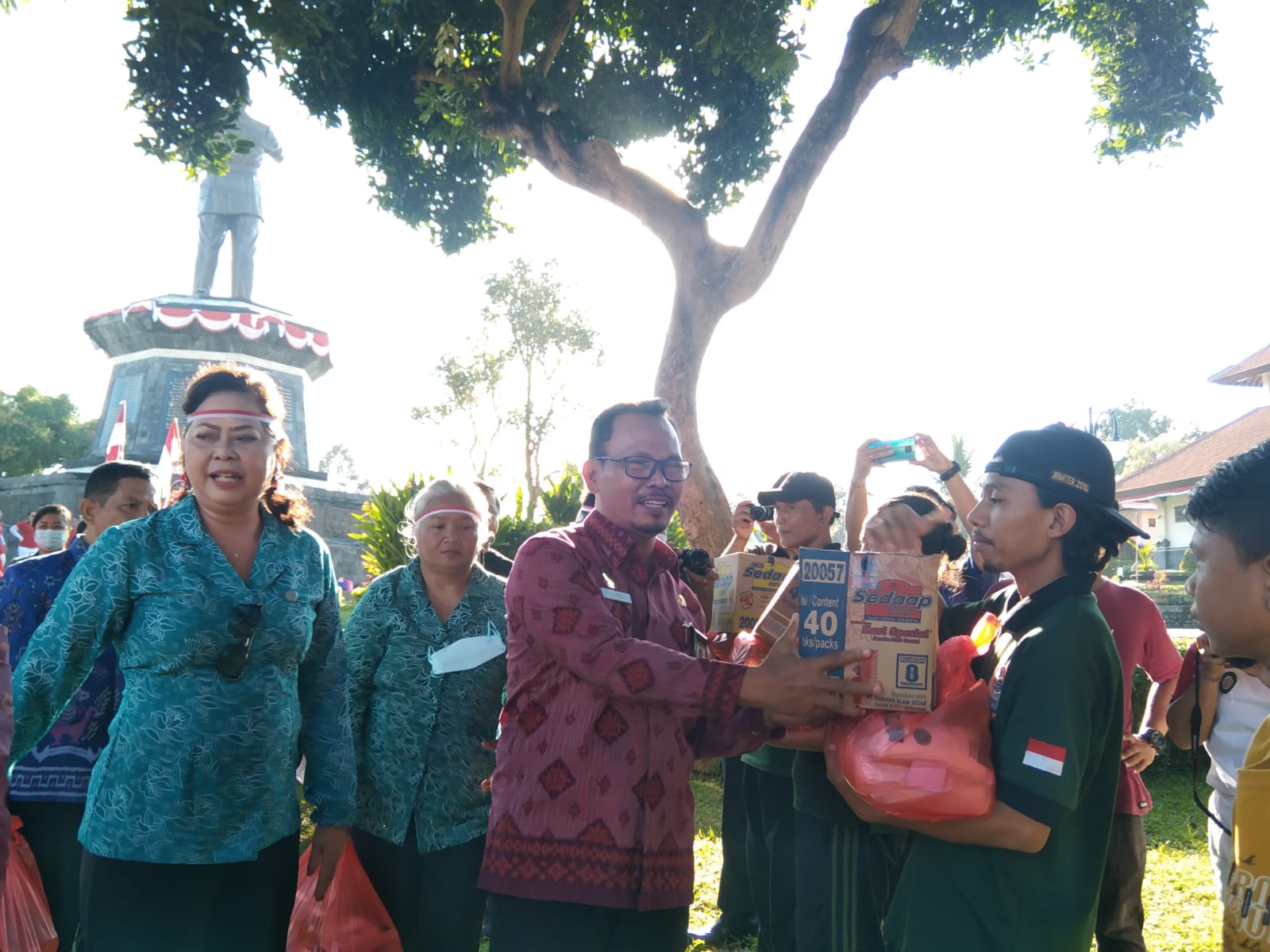 Bertempat di RTH Taman Bung Karno Sukasada, Plt Ketua Penggerak PKK Kabupaten Buleleng,Ida Ayu Wardhany Sudjitra didampingi Kadis Sosial Kabupaten Buleleng I Putu Kariaman Putra S.Sos.MM hadir pada kegiatan penyaluran bansos untuk 50 orang anak terlantar dan 50 orang petugas kebersihan RTH Taman Bung Karno Sukasada.