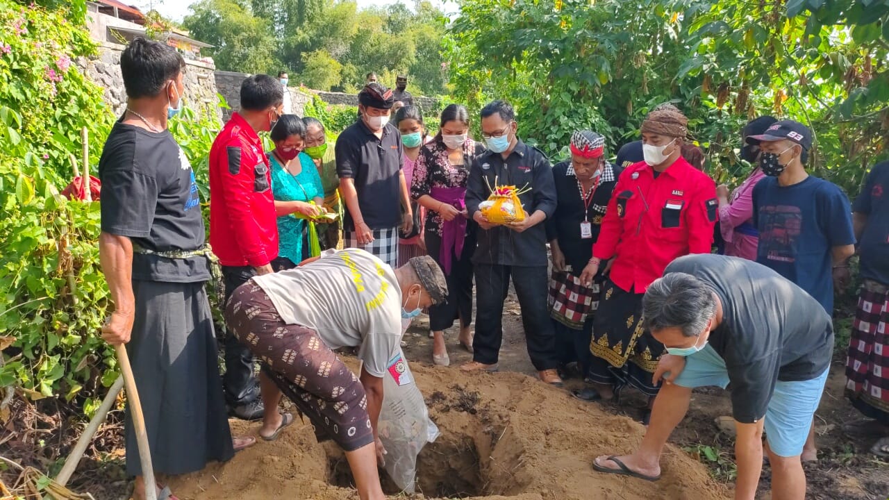 Kepala Dinas Sosial Buleleng I Putu Kariaman Putra, S.Sos, MM didampingi Sekretaris Dinsos Buleleng Putu Gopi Suparnaca, S.Sos melakukan kegiatan Penguburan kerangka Mr.X yang ditemukan di Desa Pengelatan dengan Adat Agama Hindu di Setra Desa Adat Buleleng.