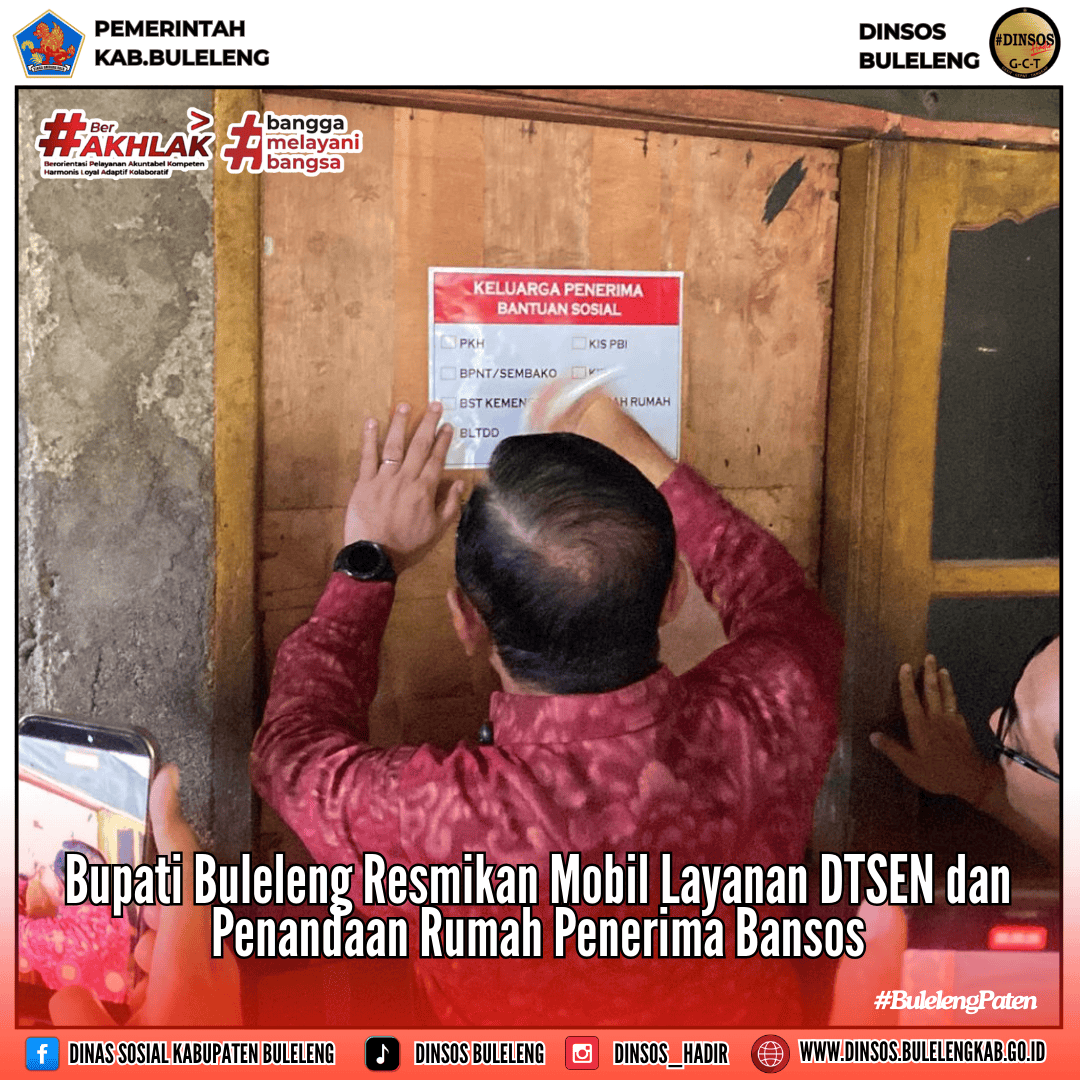 Dalam rangka meningkatkan kualitas dan ketepatan sasaran penerima bantuan sosial, Kepala Dinas Sosial Pemberdayaan Perempuan dan Perlindungan Anak Kabupaten Buleleng, I Putu Kariaman Putra S. Sos. MM, melaksanakan kegiatan penandaan rumah Keluarga Penerima Manfaat (KPM) Bantuan Sosial serta Launching mobil DTSEN.