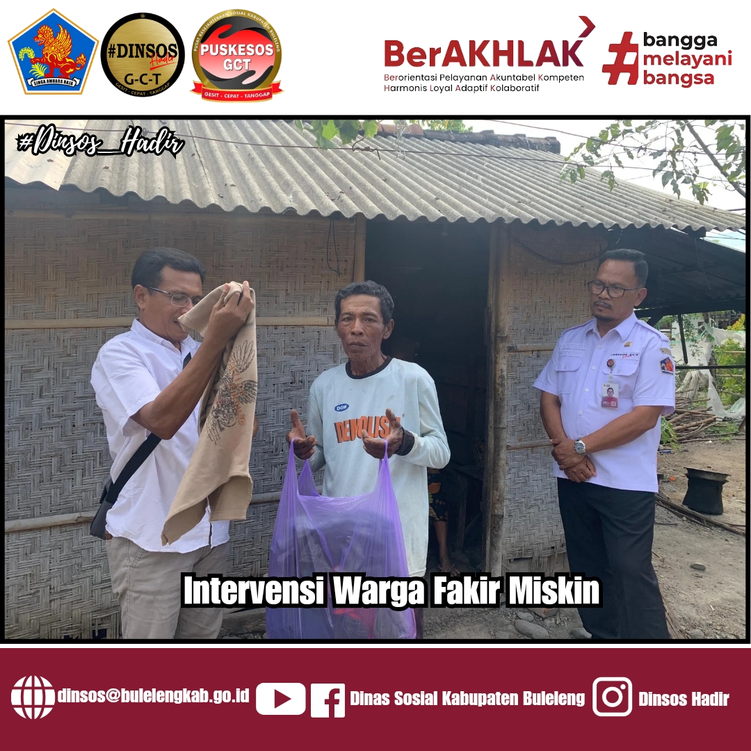 Pemerintah Kabupaten Buleleng melalui Dinas Sosial Kabupaten Buleleng melakukan intervensi program dan kunjungan langsung kerumah kepada warga Fakir Miskin di Kecamatan Gerokgak yang bertempat di dua lokasi berbeda.