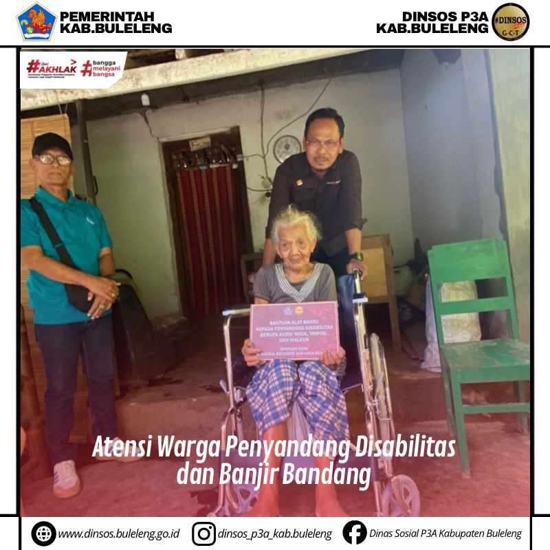 Pada kesempatan ini kepala Dinas Sosial P3A Kabupaten Buleleng juga menyerahkan bantuan satu unit kursi roda dan satu paket sembako untuk penyandang disabilitas Ketut Wasih. Bantuan kursi roda tersebut merupakan kolaborasi bersama Pemerhati Sosial dari Jakarta yakni Dr. Haerul Bengardi dan Ghea Bengardi untuk dapat meringankan beban warga dalam menjalani kehidupan kesehariannya