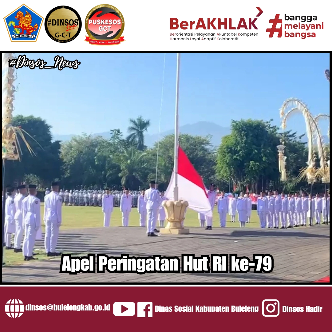 Pemerintah Daerah Kabupaten Buleleng gelar Apel Peringatan Hut RI ke-79 Tahun 2024 dengn tema “Buleleng Berbangga, Untuk Nusantara” Dalam kegiatan ini Penjabat Bupati Buleleng Ir. Ketut Lihadnyana, M.M.A bertindak sebagai inspektur pada Upacara.Sementara itu, Letda Inf. I Komang Arnatha bertindak sebagai komandan upacara dari satuan Danton Senjata Mesin Sedang Kompi Bantuan Yonif Raider 900/SBW di Lapangan Taman Kota Singaraja