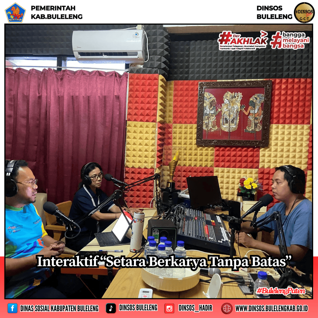 Program Obras (Obrolan Bersama Narasumber) Radio Nuansagiri 91.2 FM kembali hadir menyapa pendengar setia pada pagi hari ini dengan mengangkat tema “Setara Berkarya Tanpa Batas.” Acara dipandu langsung oleh host Metariawan dengan menghadirkan narasumber utama Kepala Dinas Sosial Kabupaten Buleleng, I Putu Kariaman Putra, S.Sos., M.M., yang turut didampingi oleh Ketua HWDI Buleleng, Luh Yasa, serta Ketua PPDI Buleleng, Ketut Budiarta.