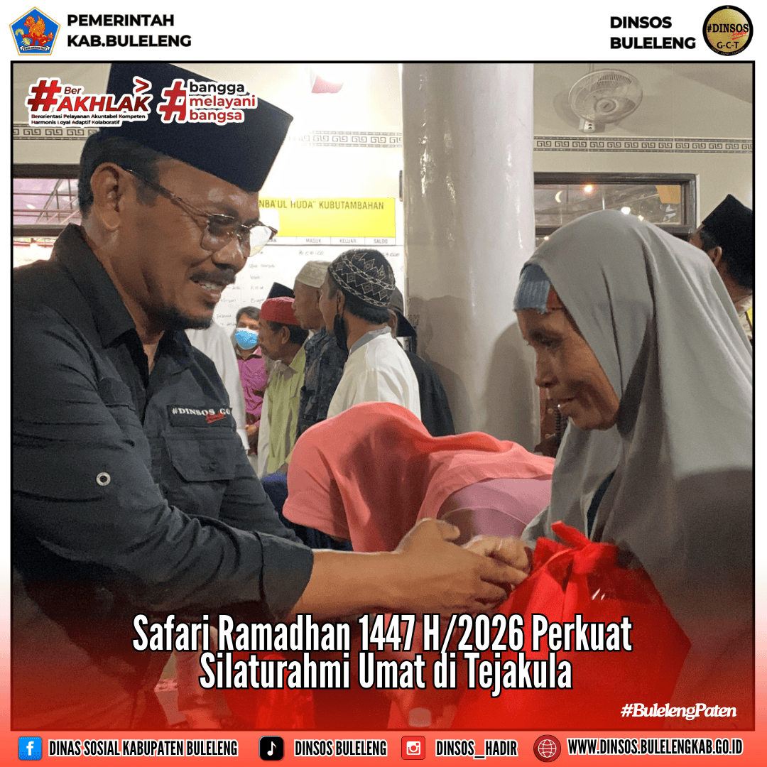 Kadis Sosial P3A Kabupaten Buleleng, I Putu Kariaman Putra S. Sos, MM, hadir mendampingi Bupati Buleleng, I Nyoman Sutjidra bersama Wakil Bupati Buleleng, Gede Supriatna dalam pelaksanaan Safari Ramadhan 1447 H/2026 Badan Amil Zakat Nasional Kabupaten Buleleng bertempat di Masjid Al-Ihsan Desa Tembok Kec.Tejakula dan dilanjutkan di Masjid Mamba’ul Huda jalan raya Air Sanih untuk berbuka puasa