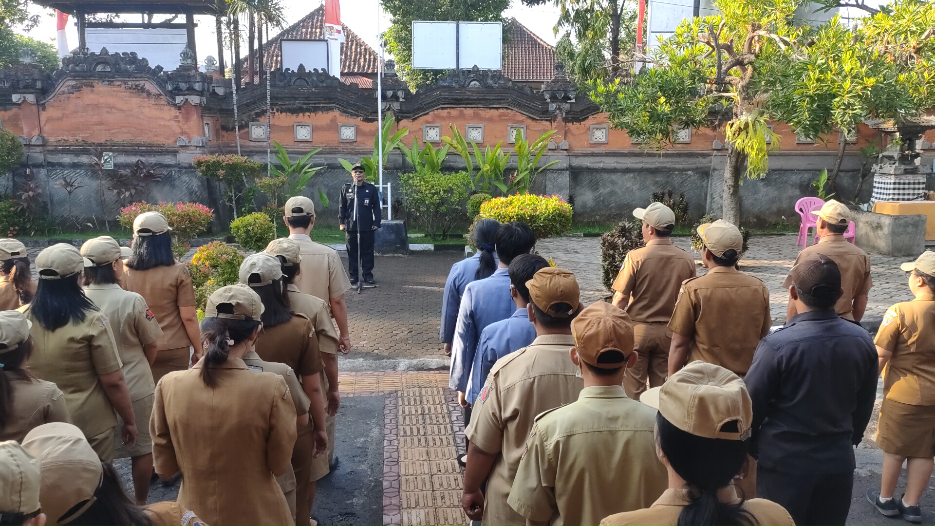 Bertempat dihalaman depan Dinas Sosial Kabupaten Buleleng, berlangsung kegiatan Apel pagi yang dipimpin langsung oleh Sekretaris Dinas Sosial Kabupaten Buleleng Putu Gopi Suparnaca,S.Sos mewakili Kepala Dinas Sosial Kabupaten Buleleng I Putu Kariaman Putra,S.Sos,MM dengan diikuti oleh Pejabat Struktural, Fungsional, ASN dan Non ASN.
