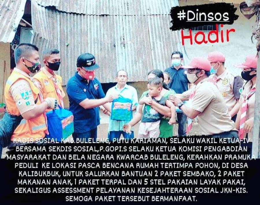 Kadis Sosial Buleleng mengungkapkan bahwa setelah kami mendapatkan informasi adanya bencana di wilayah Kabupaten Buleleng kita tindak lanjuti dengan mengadakan assessment dan melihat langsung kondisi dilapangan di dua lokasi berbeda yakni di Desa Bebetin kerumah warga yang terkena musibah tanah longsor dan di Desa Kalibukbuk yang rumahnya tertimpa pohon besar, sehingga kami Dinsos Buleleng langsung mengatensi dengan memberikan bantuan sembako dan sapras untuk meringankan beban warga yang terkena musibah bencana.