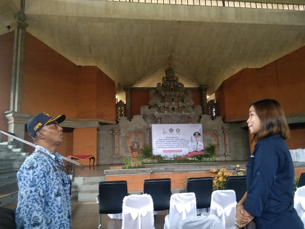 Bertempat di Gedung Kesenian Singaraja, seluruh pegawai Dinsos Buleleng khususnya laki-laki melakukan kegiatan gladi resik bersih-bersih tempat pelaksanaan acara kegiatan penyerahan simbolis Bantuan Sosial Uang (BSU) Pemerintah Kabupaten Buleleng.