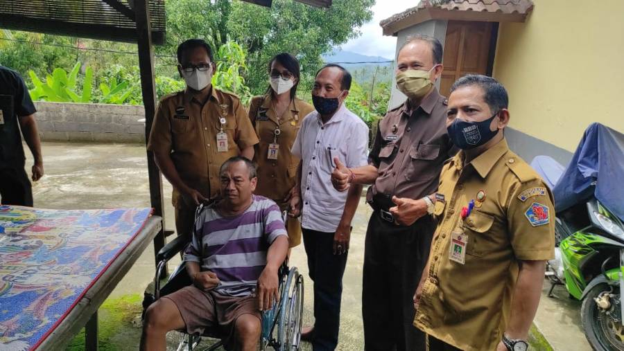 Kepala Dinas Sosial Buleleng I Putu Kariaman Putra,S.Sos,MM bersama Kabid Pelayanan dan Rehabilitas Sosial Maman Wahyudi,S.Sos, Kepala Bidang Pemberdayaan Sosial dan Pengangan Fakir Miskin Nyoman Mariani Febrianti,S.Sos.M.A.P berkunjung ke Desa Munduk Bestala, Kec.Seririt dan Desa Kedis, Kec.Busungbiu guna memberikan bantuan berupa kursi roda untuk warga Desa Kedis yang mengalami sakit struk.