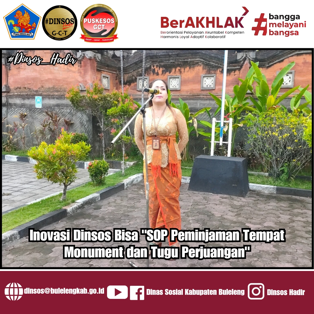 Pada hari ini Komang Arik Sandewi,S.Sos selaku pegawai Non ASN di bidang Umum dan Keuangan maju kedepan untuk memaparkan Inovasi Dinsos Bisa” SOP Peminjaman Tempat Monument dan Tugu perjuangan”.