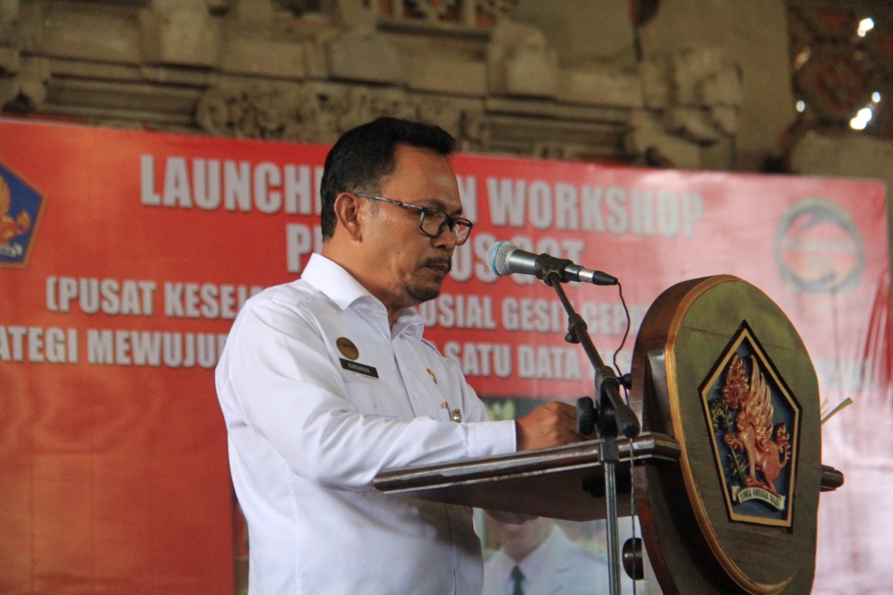 Kadissos Kariaman melaporkan dari sambutannya, disampaikan bahwa pada saat ini tercatat 365.445 masuk dalam DTKS, melalui launching dan workshop ini bertujuan untuk meningkatkan pengetahuan serta pemahaman bagi seluruh operator di Desa/Kelurahan di Kabupaten Buleleng. Serta kegiatan launching dan workshop Puskesos GCT ini merupakan salah satu upaya dalam mewujudkan satu data yang akurat sehingga program-program pemberdayaan sosial berjalan secara maksimal.