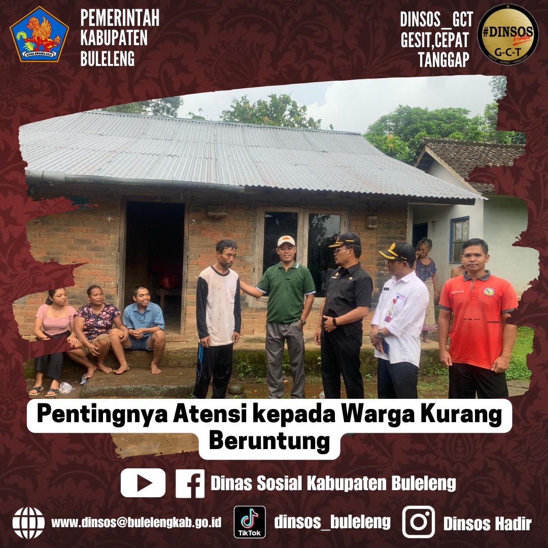 Pemerintah Daerah melalui Kadis Sosial Buleleng, Putu Kariaman Putra didampingi Kepala Bidang Yehsos dan TKSK Sawan melaksanakan atensi kerumah warga dua lansia disabilitas di Bd Desa Desa Sekumpul Kecamatan Sawan, lansia tersebut bernama Luh Mudi usia 92 tahun dan anaknya Ketut Masih 65 tahun yang keduanya kondisinya sangatlah memperihatinkan mereka hanya bisa terbaring di tempat tidur kurang lebih sudah 13 tahunan dan segala aktifitasnya dibantu oleh anak dan cucunya. Setelah di asesmen Luh Mudi sudah mendapatkan bantuan JKN KIS aktif dan BSU Disabilitas tahun 2023-2024 dan Ketut masih sudah mendapatkan bantuan JKN KIS untuk perawatan kesehatannya.
