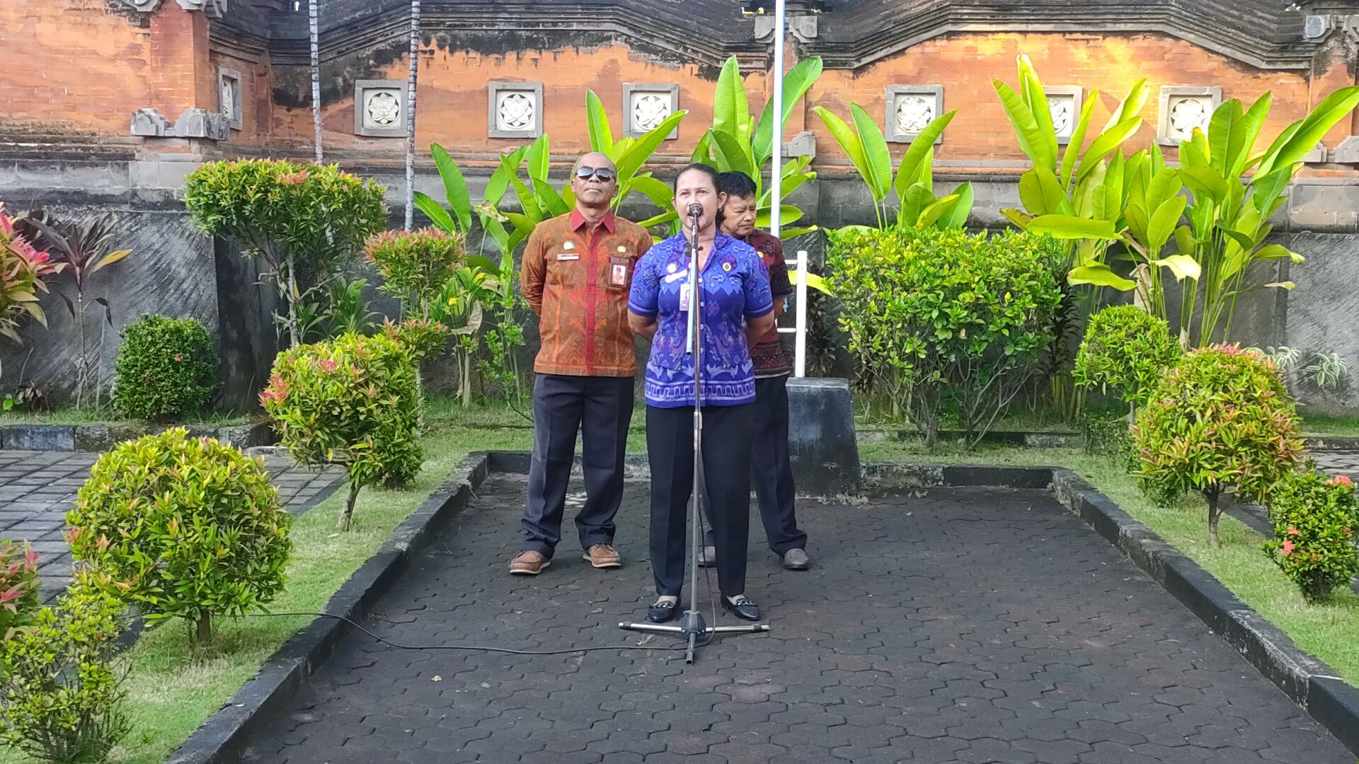 Putu Gopi tegaskan kembali saat memimpin apel untuk tetap menerapkan sikap disiplin dan loyalitas tinggi untuk mewujudkan pelayanan publik yang prima serta mengucapkan terima kasih kepada seluruh pegawai yang telah hadir mengikuti apel pagi sebagai wujud sikap disiplin ASN dan Non ASN.