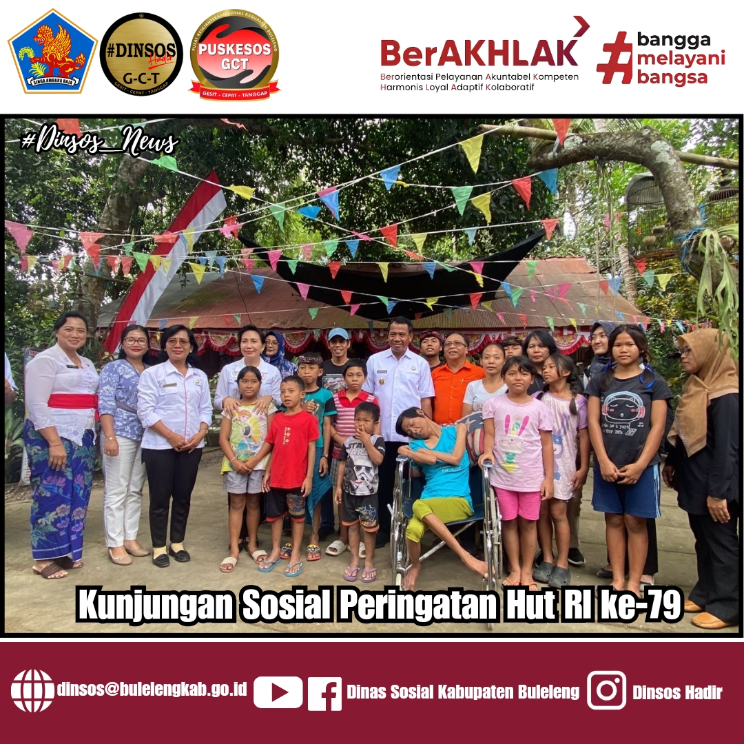 Dinas Sosial Kabupaten Buleleng memfasilitasi kunjungan sosial yang menyasar ke tiga LKSA yakni LKSA Widya Asih Panarukan, Destawan Desa Sawan, dan Miftahul Ulum Desa Pegayaman serangkaian Hut RI ke-79 Tahun 2024 tema ‘Buleleng Berbangga,Nusantara Baru Indonesia Maju’.