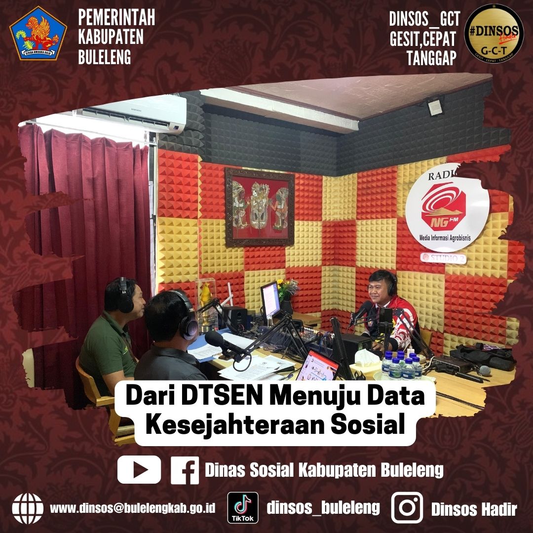 "Data Tunggal Sosial dan Ekonomi Nasional (DTSEN) ini merupakan sebuah basis data tunggal individu dan atau keluarga yang memuat kondisi sosial ekonomi penduduk Indonesia dan telah dipadankan dengan data kependudukan. Ini digunakan untuk mendukung keterpaduan program pembangunan nasional dan sinergi antar kementerian, lembaga dan pemerintah daerah dalam rangka mencapai tujuan pembangunan yang terukur dan berkelanjutan". Hal tersebut disampaikan oleh Kepala Dinas Sosial Kabupaten Buleleng, I Putu Kariaman Putra,S.Sos,MM dalam acara Obrolan Bersama Narasumber (OBRAS) di Studio II Radio Nuansa Giri FM, jumat (25/04/2025).