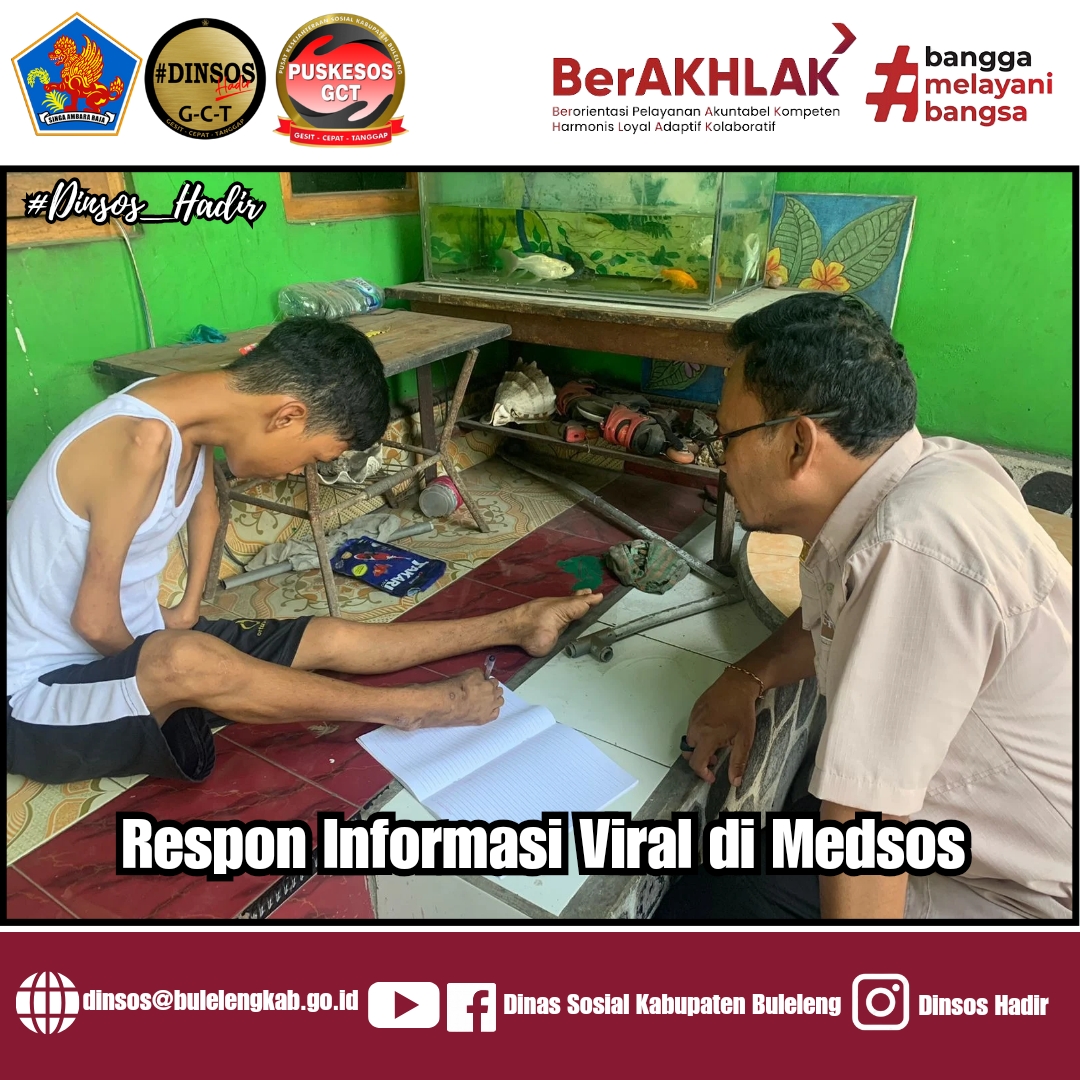 Pemerintah Daerah Kabupaten Buleleng melalui Dinas Sosial. memfasilitasi informasi viral di media sosial (medsos) tiktok di Desa Petandakan Kecamatan Buleleng yang sebelumnya sudah dapat diassesmen tingkat kelayakan di rumahnya dan keadaan warga tersebut