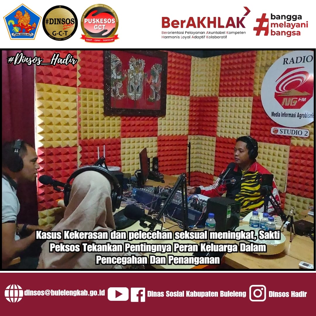 Satuan bakti pekerja sosial (sakti peksos) pendamping rehabilitasi sosial Kementerian Sosial (Kemensos) Alfonsius Kolimasang,A.Md Peksos dan Bela Savira Fitriani,S.Psi berkesempatan menjadi narasumber dalam Obras Radio Nuansa Giri dengan topik Apa kabar pelecehan seksual pada anak dan kekerasan perempuan, pada Jumat 6 September 2024.