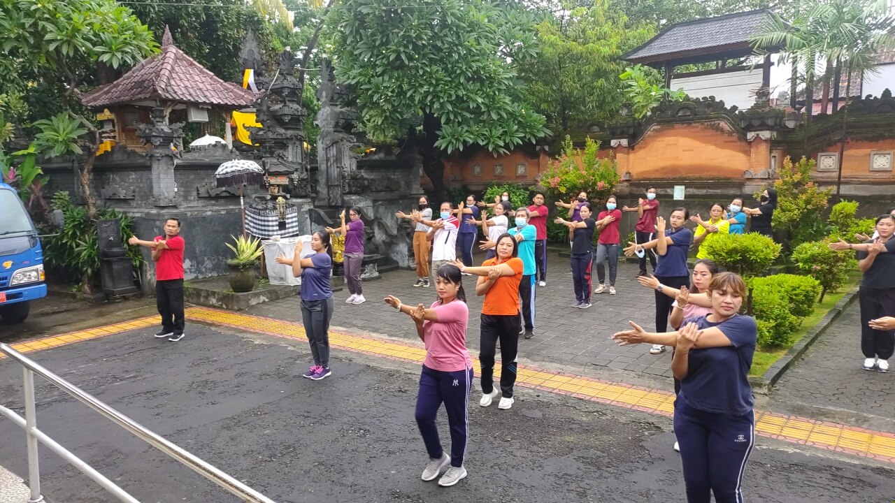Bertempat dihalaman depan Dinas Sosial Kabupaten Buleleng Giat Dinsos hari ini melakukan Kegiatan Apel dan senam sehat dengan tetap menerapkan Protokol Kesehatan.