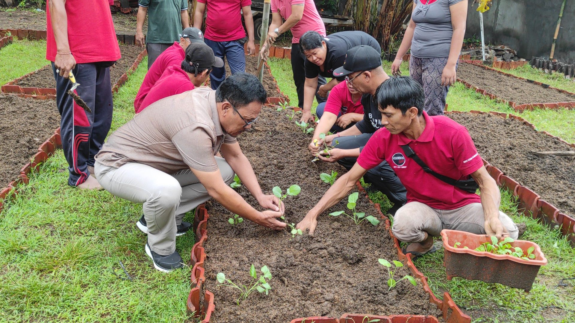 Kagiatan gotong royong dan menanam bibit pohon pangan seperti Cabai, Terong, Sawi, papaya dan bibit pohon kemangi dilakukan oleh seluruh SDM Dinsos Buleleng dimulai dari pejabat Struktural, Fungsional, ASN, Non ASN, Tukang kebun sampai dengan Cs (Clening Service) berbaur bahu membahu melakukan giat Penataan Taman, Kebun dan Menanam bibit pohon pangan, dengan dikoordinir langsung oleh Kepala Dinas Sosial Kabupaten Buleleng I Putu Kariaman Putra,S.Sos,MM didampingi Sekdis Sosial Kab.Buleleng Putu Gopi Suparnaca,S.Sos.