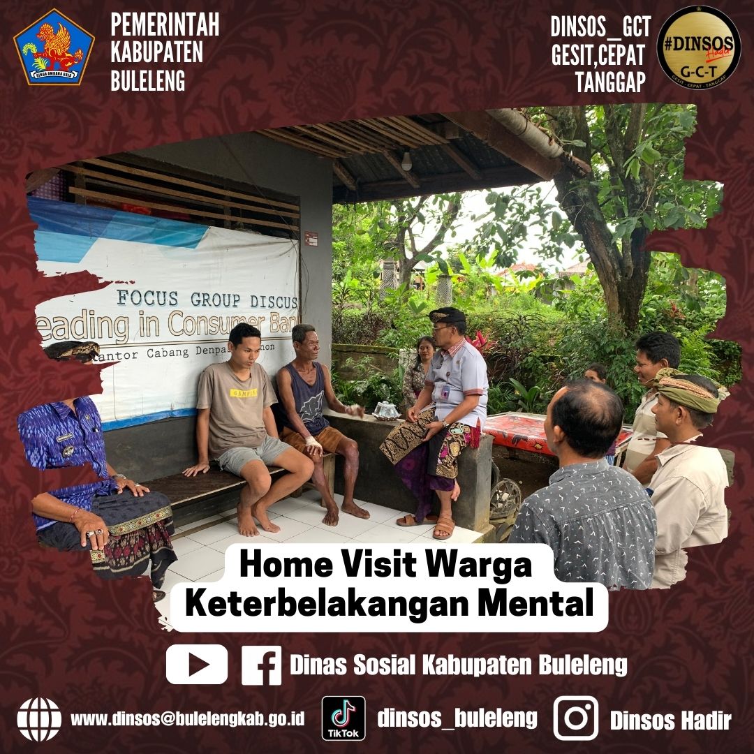 Kepala Dinas Sosial I Putu Kariaman Putra didampingi Kabid Yarehsos Maman Wahyudi mengunjungi salah satu warga penyandang disabilitas mental di Banjar Dinas Poh Desa Pohbergong.