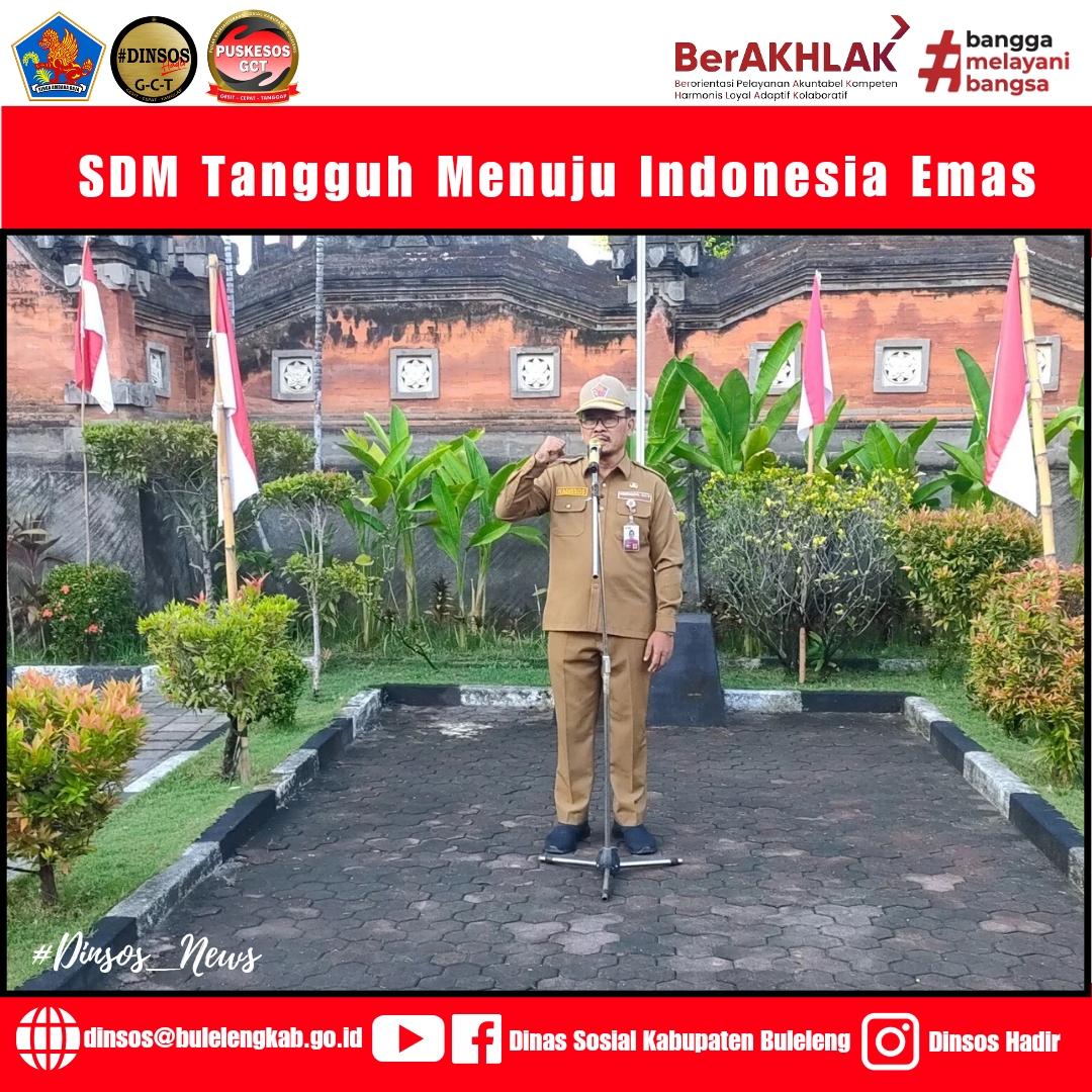 Dalam rangka peningkatan mutu kualitas SDM Dinsos yang tangguh guna dapat menyongsong Indonesia Emas di tahun 2025-20245 kedepan agar kiranya upaya-upaya untuk meningkatkan kesejahteraan masyarakat tetap terlindungi secara tepat sasaran dan dapat bermanfaat bagi masyarakat Kabupaten Buleleng, sesuai dengan moto ‘Dinsos Hadir GCT’ agar bisa dirasakan manfaatnya tanpa mengenal waktu dalam memberikan pelayanan yang terbaik