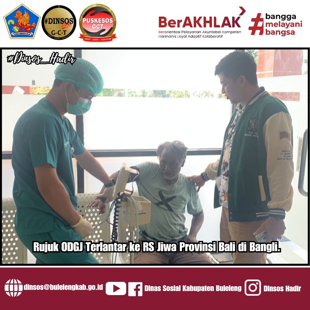 Kepala Dinas Sosial I Putu Kariman Putra Menjelaskan bahwa Dinsos Kembali menerima warga ODGJ di yang diketemukan di depan SMP 1 Seririt, ternyata menurut informasi dari Satpol PP Kecamatan Seririt, bahwa yang bersangkutan tanpa mengantongi indentitas dan kondisinya diperkirakan gangguan jiwa, selanjutnya kami berkoordinasi dengan Dinas Kesehatan Kab. Buleleng dan mengajak yang bersangkutan ke RSUD Buleleng untuk mendapatkan rujukan ke Rumah Sakit Jiwa Provinsi Bali di Bangli.