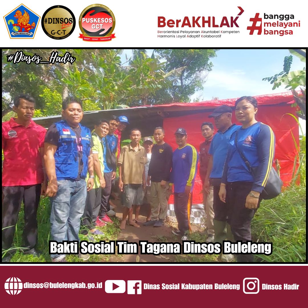 Bakti Sosial oleh Tim Taruna Siaga Bencana (TAGANA) Dinas Sosial Kabupaten Buleleng kali ini dilaksanakan di rumah a.n Ketut Marina (58) yang beralamat di Bd Bululada, Desa Selat, Kec.Sukasada.