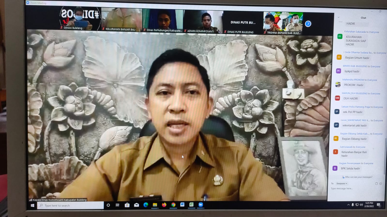 DINSOS HADIR VIA ZOOM MENGIKUTI RAPAT KOORDINASI PENGELOLAAN WEBSITE PEMKAB BULELENG TAHUN 2022