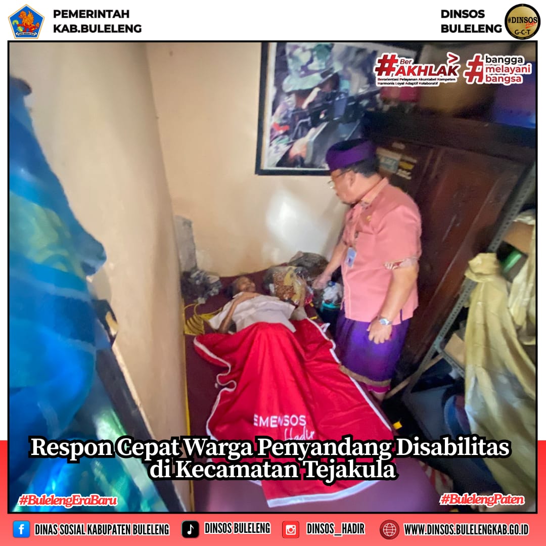 Menindaklanjuti informasi adanya warga penyandang disabilitas dan sakit kronis yang terputus program bantuan sosial yang diterima selama ini. Kepala Dinas Sosial Kabupaten Buleleng, I Putu Kariaman Putra,S.Sos,MM. bersaama SDM PKH Kecamatan Tejakula melakukan kunjungan ke Desa Tejakula, Kecamatan Tejakula, sebagai bentuk atensi terhadap warga kurang beruntung pada Kamis (11/12/2025) siang.