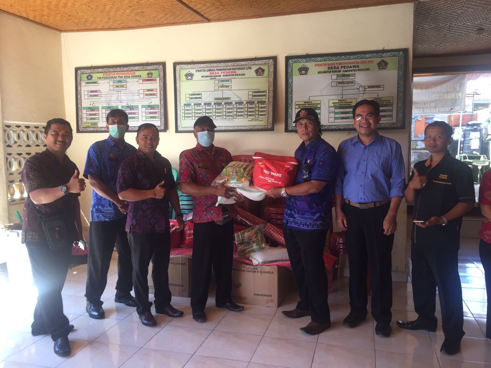 Dinsos Buleleng yang turun langsung ke Kantor Desa Pedawa, menyerahkan bantuan berupa Paket Sembako, Permakanan, Terfal, Peralatan Dapur dan Family KIT guna mampu meringankan beban yang dialami oleh kedua Korban bencana tersebut.
