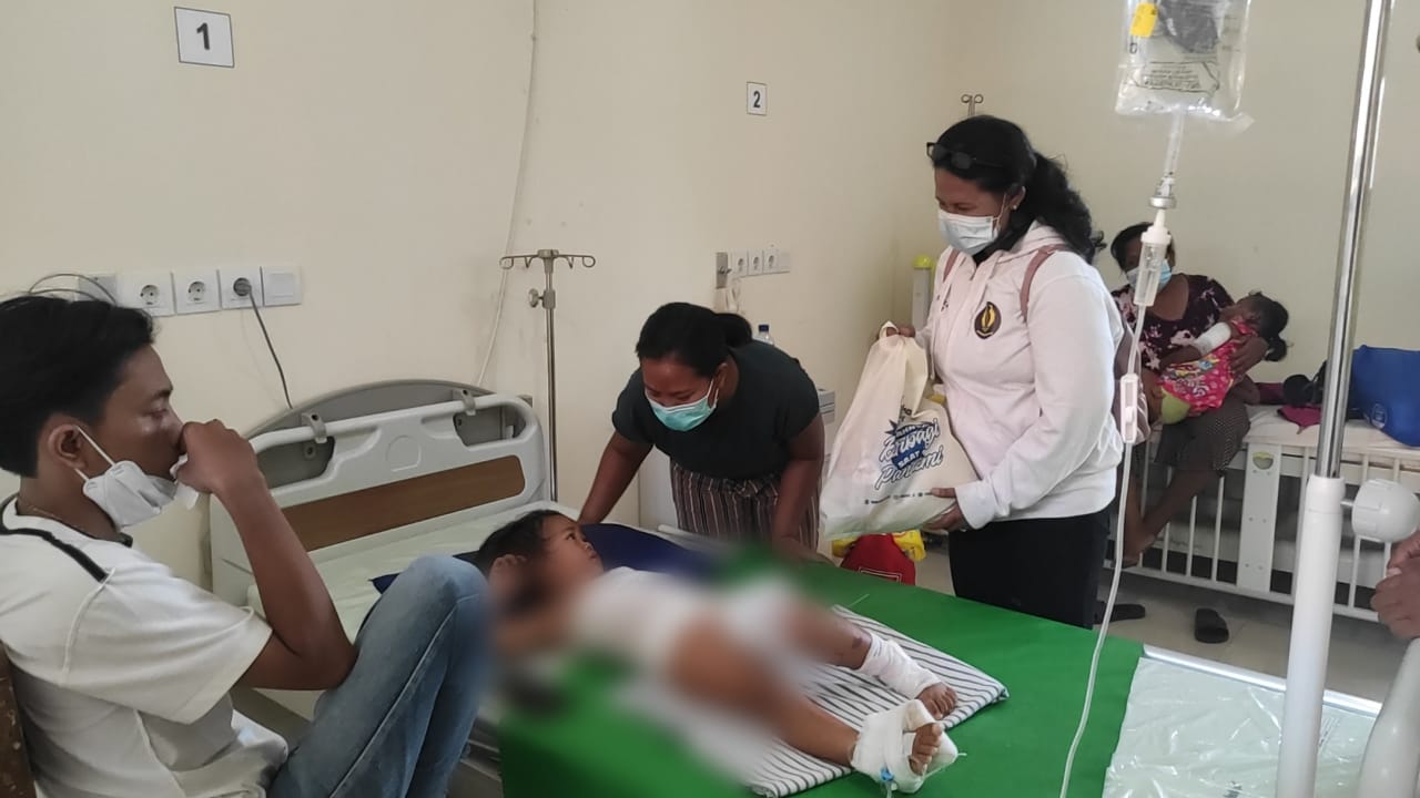 Dilain lokasi yaitu bertempat di RS. Pratama Giri Emas, Kasi Pelayanan Sosial Anak dan Lanjut Usia Ni Luh Riawati, S.Sos, didampingi Sakti Peksos Anak Kemensos RI Bella Savira fitria, S.Psi Menyambangi sekaligus mengecek kondisi kesehatan korban luka bakar pada hari senin, 6 September 2021, siang hari lalu terkena musibah tersiram kuah bakso panas yang mengakibatkan kakak beradik yaitu ni luh Putu Anggita Sari dan Ni Kadek Putri Yastiti kulitnya melepuh, mengelupas pasca insiden terkena kuah panas tersebut.