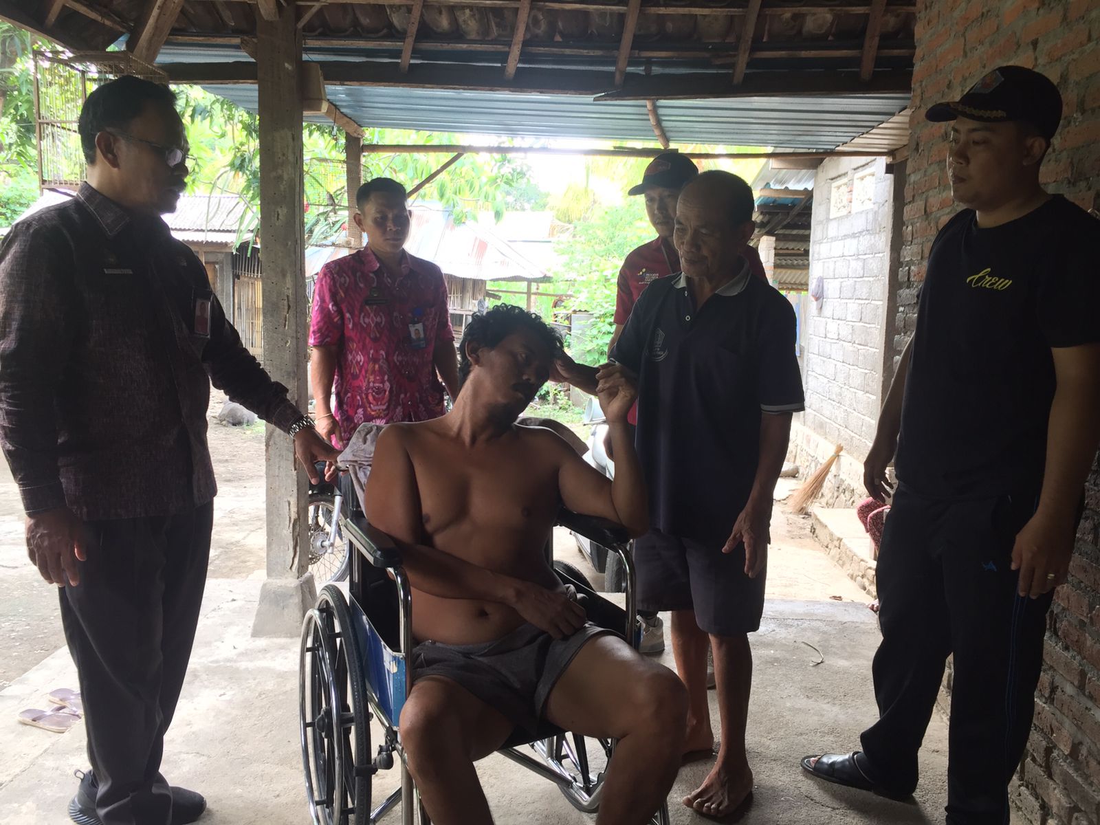 Gusti Made Darma pada kesempatan ini sudah diatensi programnya yakni nantinya diajukan masuk DTKS akan tetapi Non Program dan memiliki KIS APBD masih Aktif. Begitupula Kadissos Kariaman secara langsung menyerahkan 1 buah Kursi Roda untuk bisa meringankan beban kesehariannya baik beraktivitas maupun menikmati lingkungan di sekitarnya