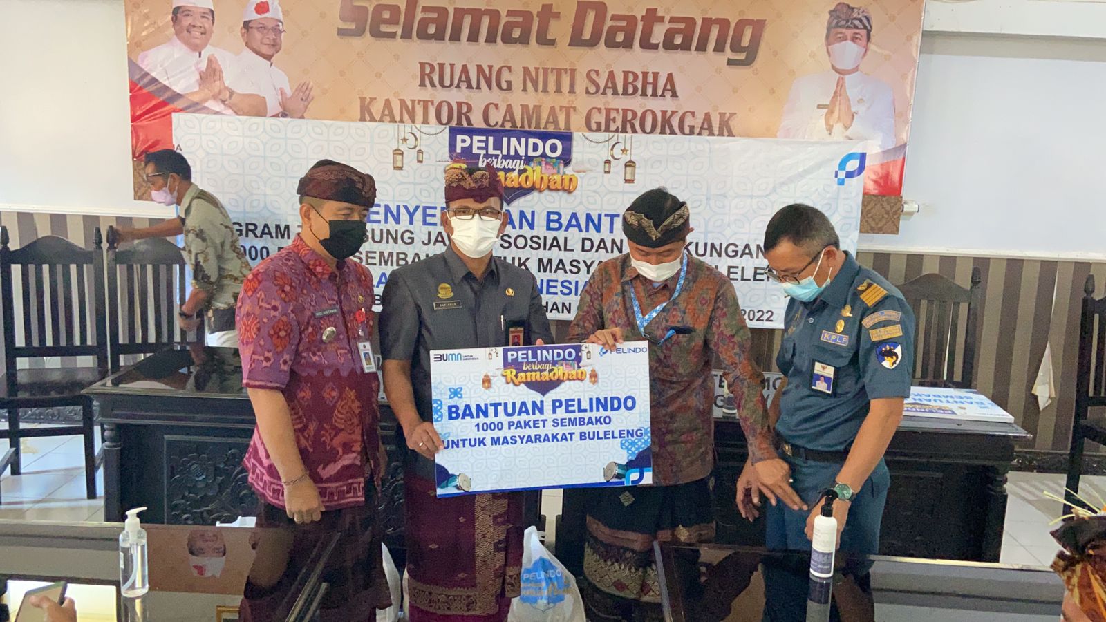 Bertempat di Kantor Camat Gerokgak Di Ruang Niti Sabha , Bapak Bupati Buleleng, Putu Agus Suradnyana,ST, yang dimana kali ini diwakili oleh Kadis Sosial I Putu Kariaman Putra,S.Sos,MM, sekaligus membacakan sambutannya dalam rangka kegiatan Penyerahan bantuan program Tanggung Jawab Sosial dan Lingkungan ( TJSL) untuk Tenaga Kerja Bongkar Muat (TKBM) dan Masyarakat di Kecamatan Gerokgak, Kabupaten Buleleng, yang berjumlah 1000 Paket Sembako. Kegiatan ini dihadiri pula oleh General Manager Pelabuhan Celukan Bawang, KSOP Pelabuhan Celukan Bawang, Camat Gerokgak, Komandan Pos AL Celukan Bawang dan Perbekel Desa Celukan Bawang Gerokgak.
