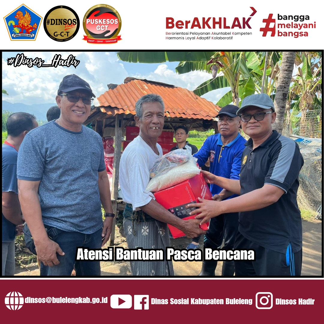 Berdasarkan laporan yang diterima, Kepala Dinas Sosial Kabupaten Buleleng I Putu Kariaman Putra,S.Sos,MM menugaskan Kabid Linjamsos besert tim Tagana Dinsos Buleleng untuk melaksanakan penyaluran bantuan kepada warga yang terdampak bencana.