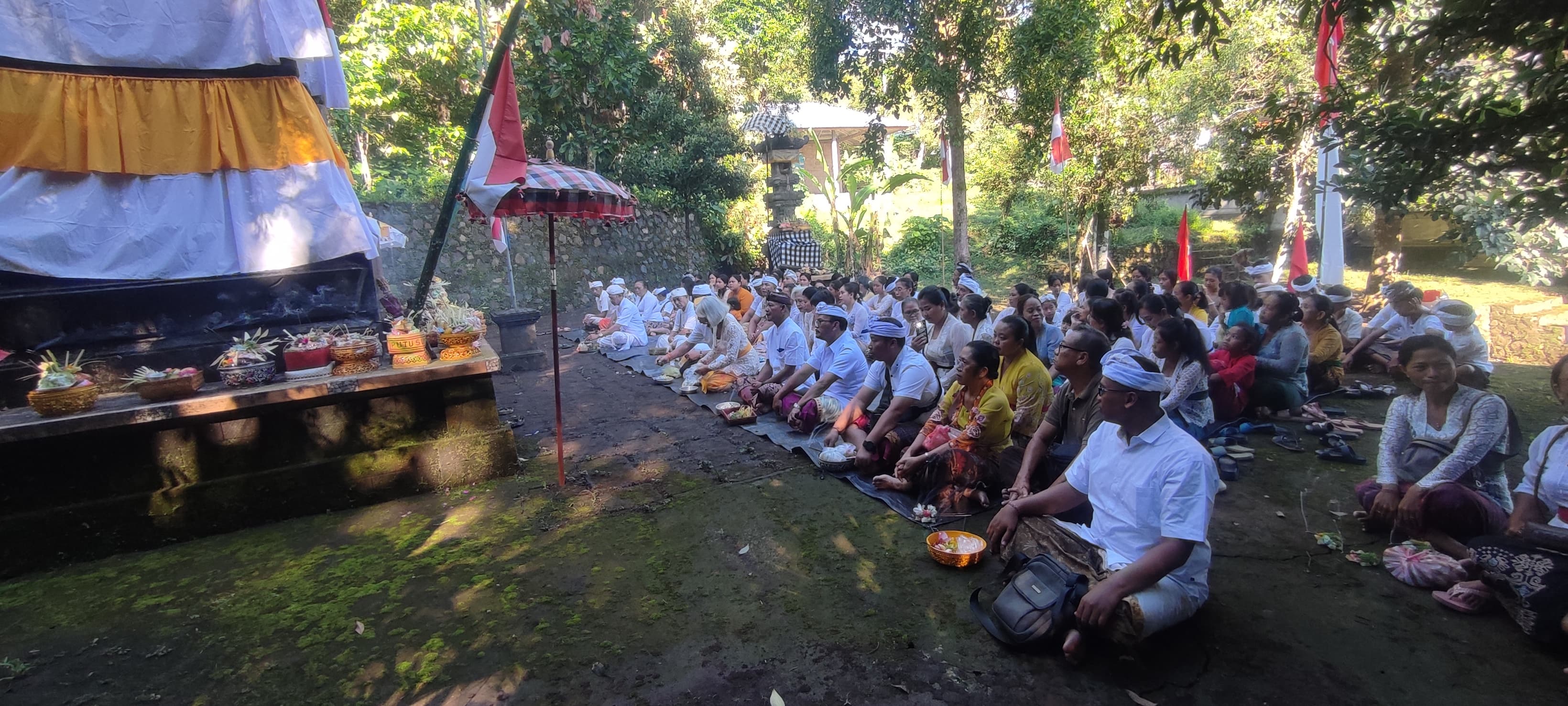 Upacara persembahyangan bersama ini dipuput langsung oleh Pemangku Gede Rejasa yang juga warga Desa Selat Sukasada