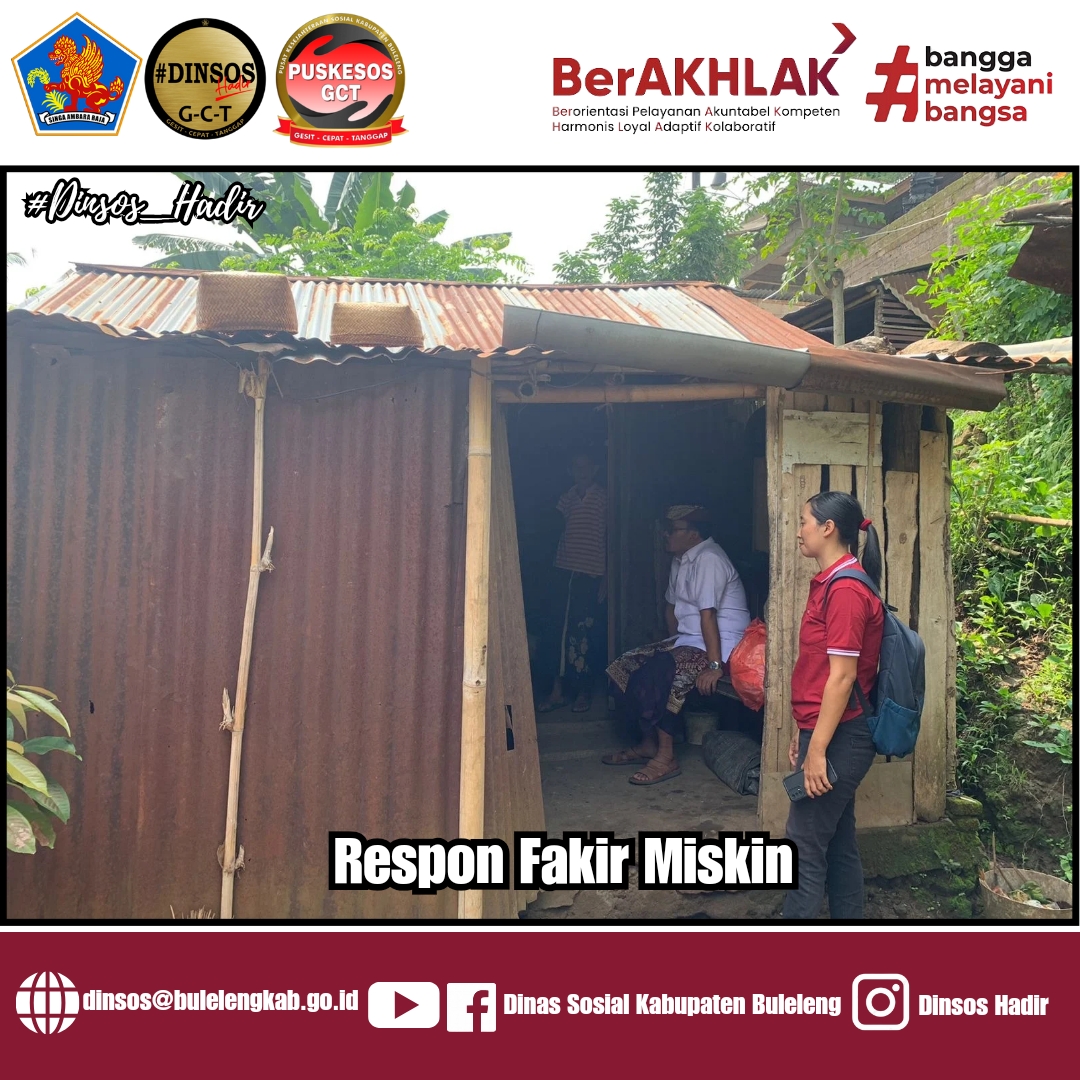 Pemerintah Daerah melalui Dinas Sosial Kabupaten Buleleng menindaklanjuti informasi dari Pendamping PKH adanya warga fakir miskin yang berlokasi di Desa Pegadungan Kecamatan Sukasada.