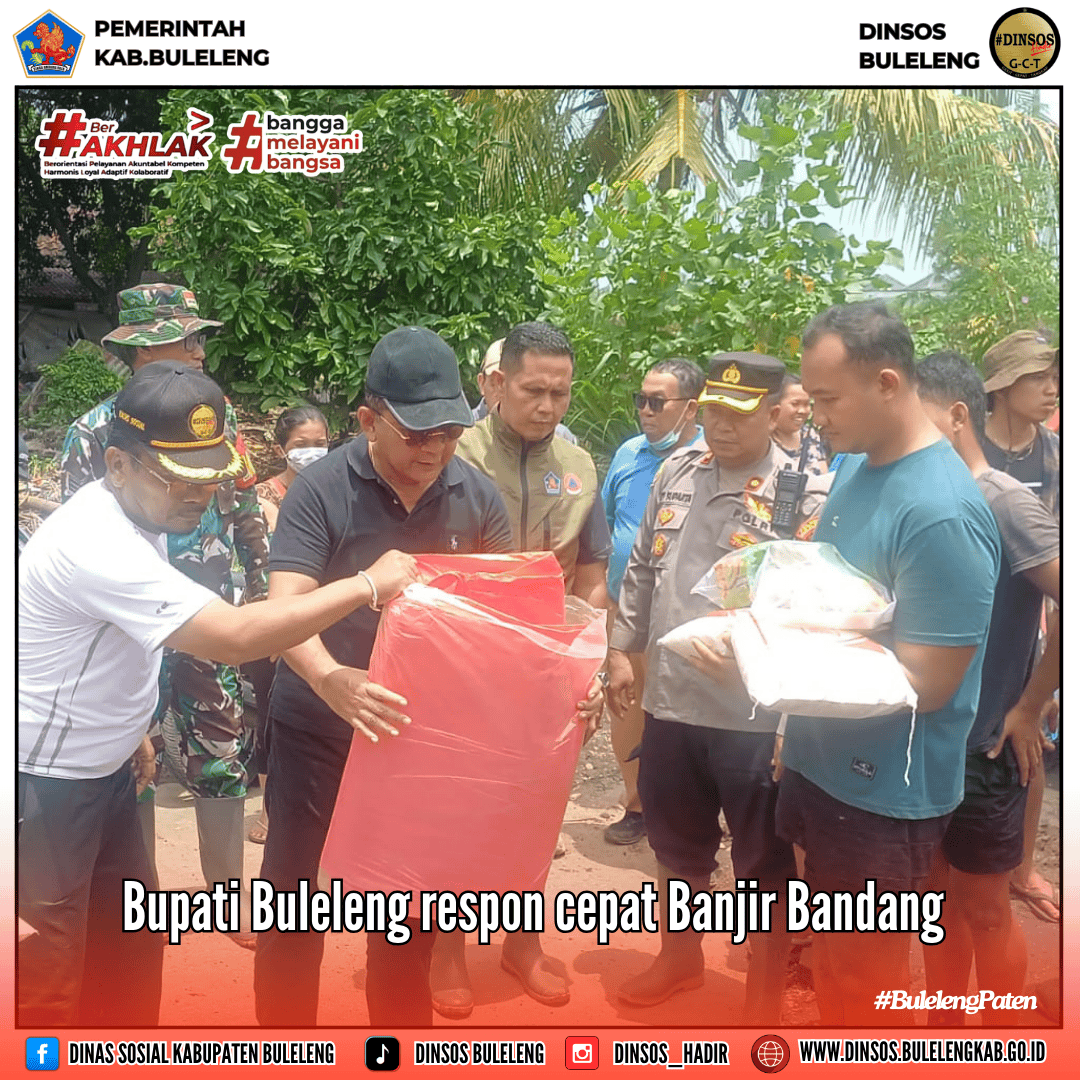 Pemerintah Kabupaten Buleleng bergerak cepat memberikan bantuan kepada warga terdampak banjir yang melanda wilayah Kecamatan Banjar dan Seririt. Kepala Dinas Sosial P3A Kabupaten Buleleng, I Putu Kariaman Putra, S. Sos. MM, mendampingi Bupati Buleleng dr. I Nyoman Sutjidra, Sp. OG, dalam pelaksanaan intervensi bantuan sosial pasca bencana kepada warga terdampak di Desa Banjar dan Desa Kalianget.