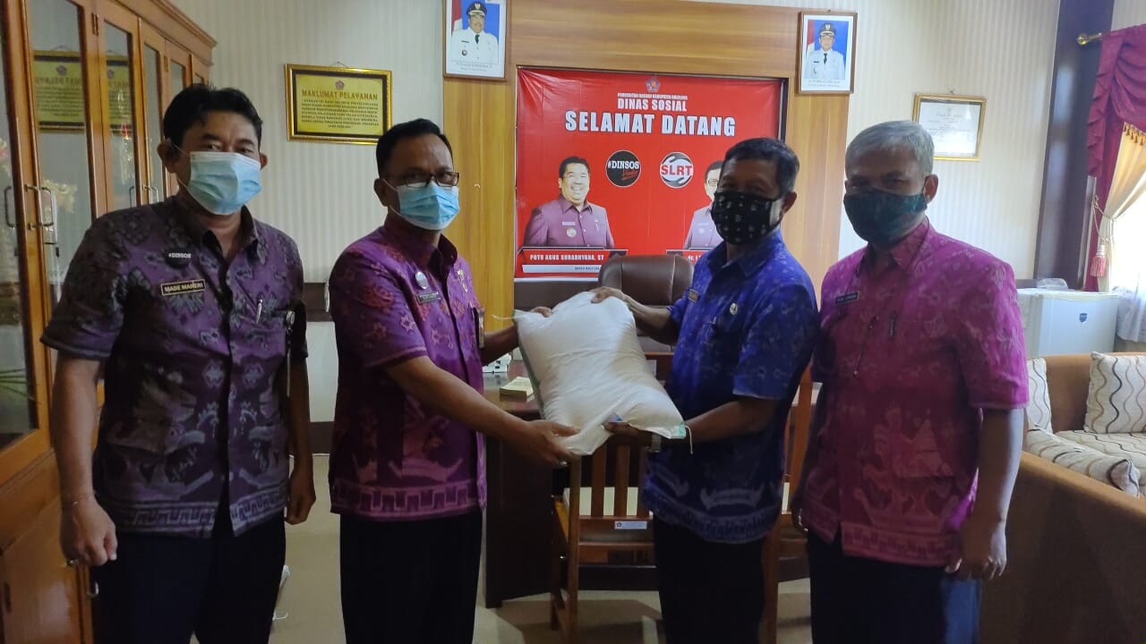 selanjutnya Kadis Sosial menyerahan bantuan sembako secara simbolis langsung kepada Lurah Kampung Anyar Made Sukarta terkait bencana banjir yang terjadi di Kelurahan Kampung Anyar, Kecamatan Buleleng, Kabupaten Buleleng.
