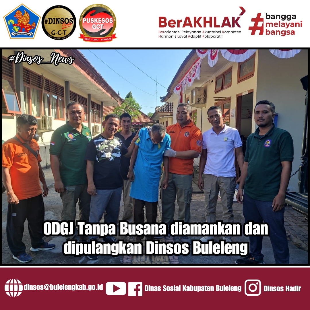 Kadis sosial I Putu Kariaman Putra dalam hal ini diwakili oleh Kabid Pelayanan dan Rehabilitasi Sosial Maman Wahyudi berkoordinasi bersama satgas ketelantaran Kab.Buleleng didapatkan informasi bahwa ODGJ tersebut berinisial IGLN usia 57 tahun, asal Kelurahan Banyuasri Kecamatan Buleleng