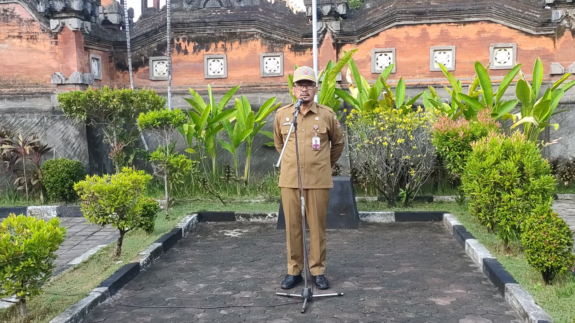 Putu Kariaman Putra menyampaikan pertama terima kasih kepada seluruh pegawai yang telah hadir mengikuti apel pagi sebagai bentuk wujud disiplin pegawai, kedua perkuat bagaimana kita melililki SDM yang tangguh, dengan mampu membuktikan diri bahwa kita bisa melalui program inovasi baru Dinsos Bisa, ketiga tingkatkan kekompakan, kebersamaan dan tanggungjawab dalam bekerja agar nantinya dalam penilaian ombusman dapat berjalan optimal, keempat sebagai SDM Dinsos kita harus menghindari yang namanya narkoba, pinjaman online dan judi online agar tidak merusak citra kita sebagai pegawai ASN, kelima selamat bertugas kepada kepala UPTD Monument Monument Tri Yudha Sakti, Optimalkan pelayanan pada Monument-monument perjuangan terkait promosi monument dan yang terakhir sebagai pegawai jika suatu saat dibutuhkan kehadirannya saat jam-jam emergency untuk bertugas diluar hari kerja harus selalu siap dan sigap.