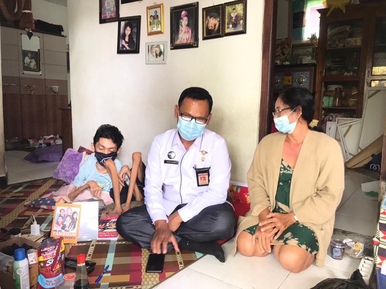 Giat Kadis Sosial Kabupaten Buleleng I Putu Kariaman Putra,S.Sos,MM didampingi Kepala Bidang Pelayanan dan Rehabilitasi Sosial Maman Wahyudi,S.Sos melakukan kunjungan kerumah warga Penyandang Disabilitas yang memiliki potensi di Desa Banjarasem, Dsn. Yeh Anakan, Kecamatan Seririt.