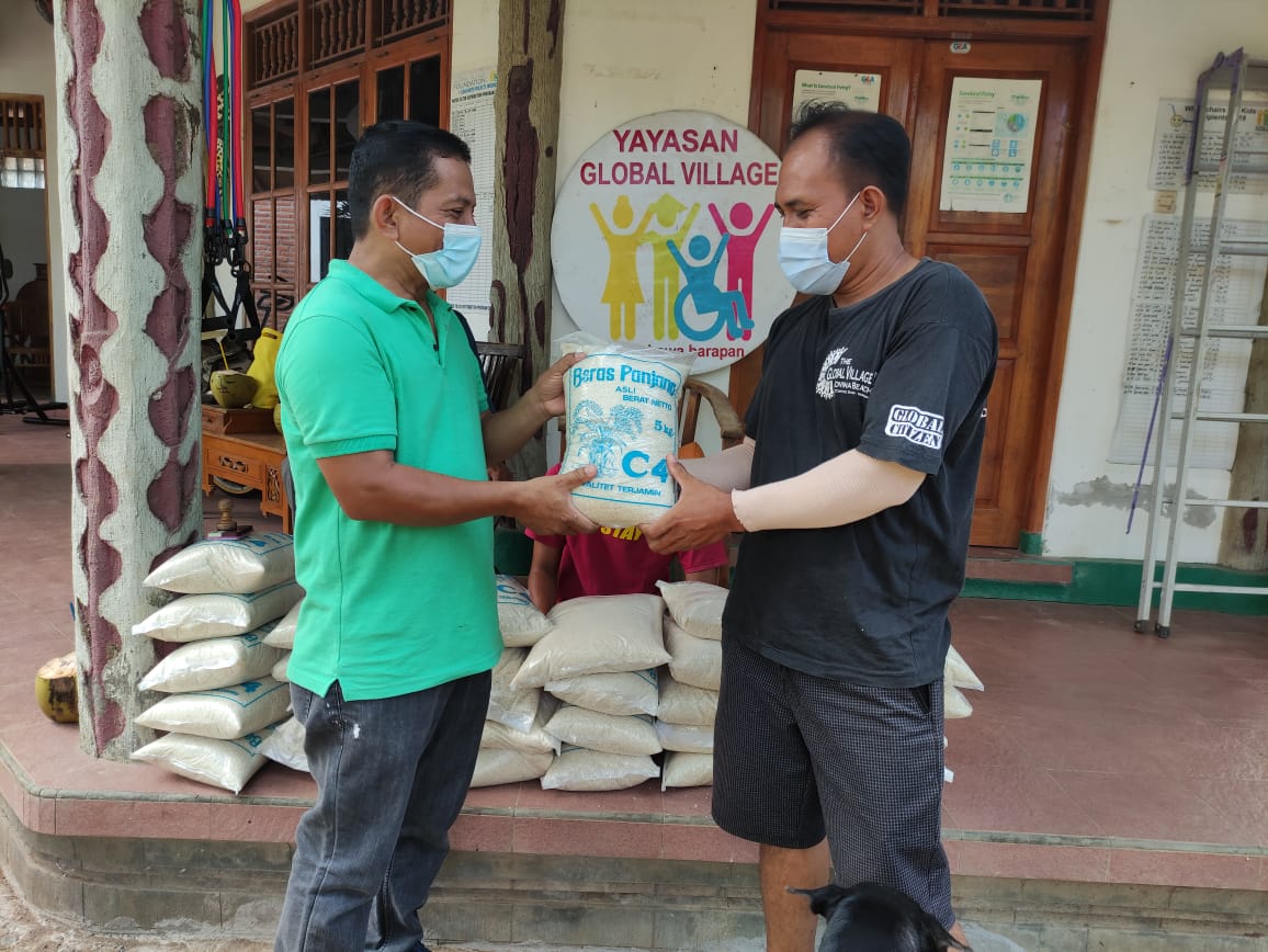 Kadis Sosial, I Putu Kariaman Putra,S.Sos, didampingi oleh Kabid Pelayanan dan Rehabilitasi Sosial, Maman Wahyudi S.Sos beserta Staf Dinsos turun langsung ke Kantor PPDI dan Global Village Foundation guna penyaluran bantuan total 60 Paket Beras untuk warga penyandang disabilitas