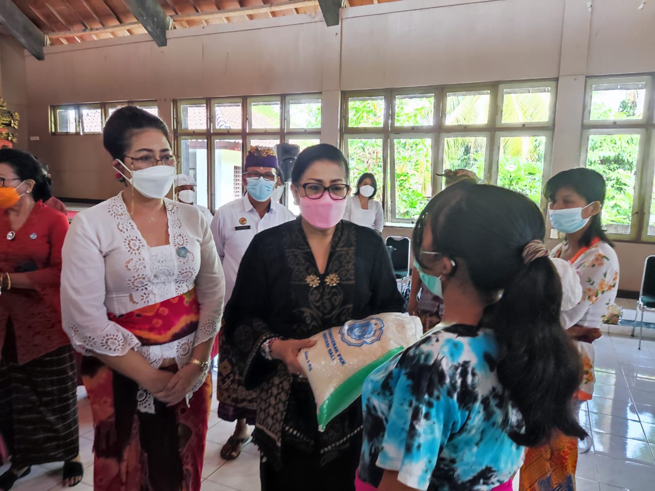 Bertempat di Gedung Wanita Laksmi Graha Singaraja, Ketua Penggerak PKK Provinsi Bali Ny. Putri Koster didampingi Kadis Sosial Kabupaten Buleleng I Putu Kariaman Putra S.Sos.MM, Kabid Pelayanan Rehabilitasi Sosial Maman Wahyudi, S.Sos serta Kepala Seksi Rehabilitasi Sosial Penyandang Disabilitas I Putu Artawan, S.Pd SD hadir dalam penyaluran bansos untuk Lansia, Ibu hamil, Balita gizi buruk serta warga Penyandang Disabilitas
