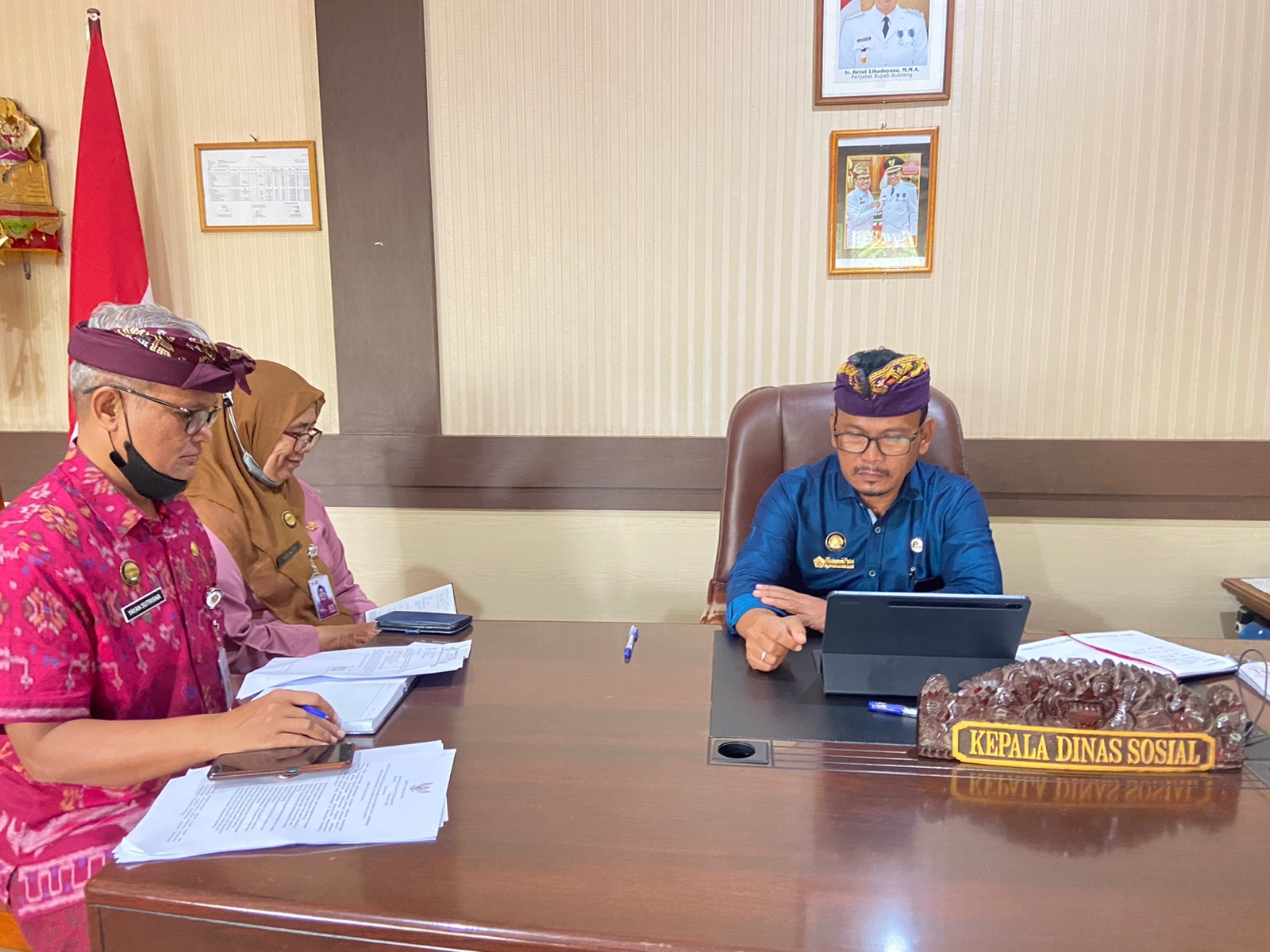 Pada kesempatan kali ini, PJ Bupati Buleleng menugaskan Kepala Dinas Sosial, I Putu Kariaman Putra,S.S.Sos.MM, sebagai Narasumber yang membawakan materi berjudul dengan “Penguatan Program JKN Untuk Mewujudkan Buleleng Sejahtera”. Rapat tersebut juga didampingi bersama Dinas Kesehatan Kab.Buleleng, Kepala Bidang Perlindungan Jaminan Sosial, Yayan Sutrisna,S.Sos, dan Penyuluh Sosial Ahli Muda,Dra,Yanti Rohayati, yang bertempat di Ruang Kadis Sosial kamis pagi tadi (2/2).