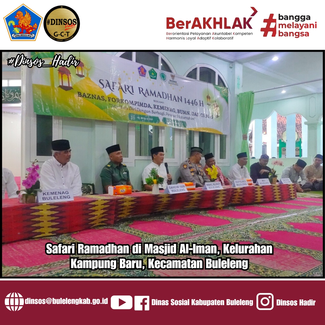 Kepala Dinas Sosial Kabupaten Buleleng, I Putu Kariaman Putra,S.Sos,MM didampingi Kabid Linjamsos dan Kabid Yanrehsos menghadiri acara Safari Ramadhan 2025 di Masjid Al-Iman, Kelurahan Kampung Baru, Kec.Buleleng. pada selasa (11/03/2025).